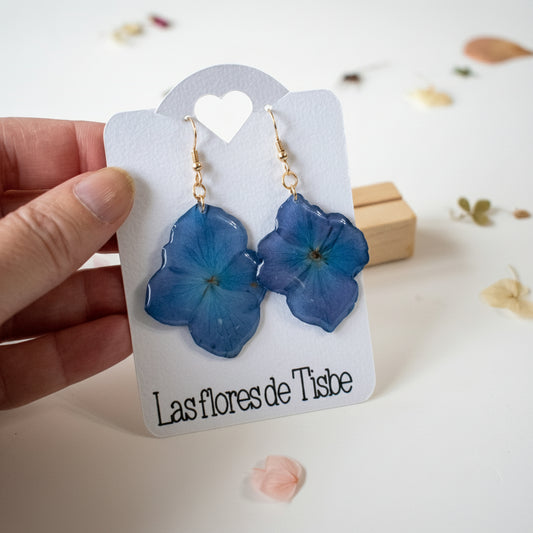 Pendientes con flor de hortensia azul