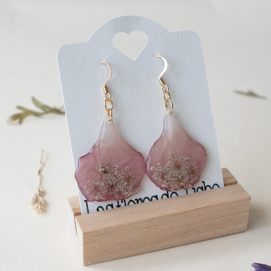 Pendientes con pétalo de geranio malva