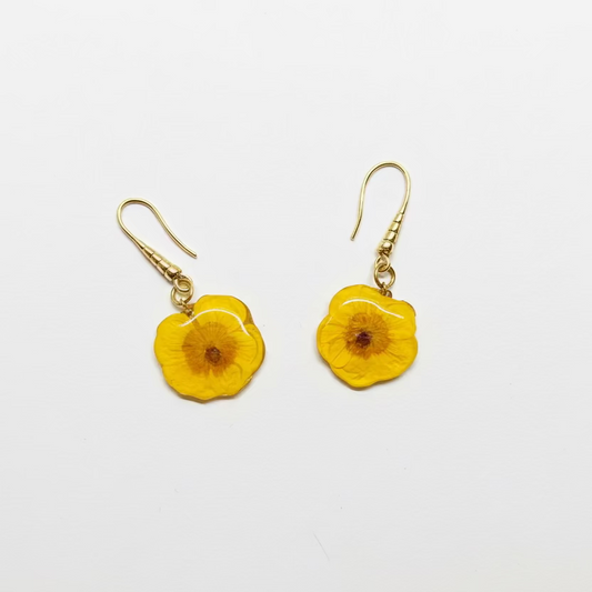 Pendientes con flores naturales prensadas hechos a mano en España: joyería botánica sostenible