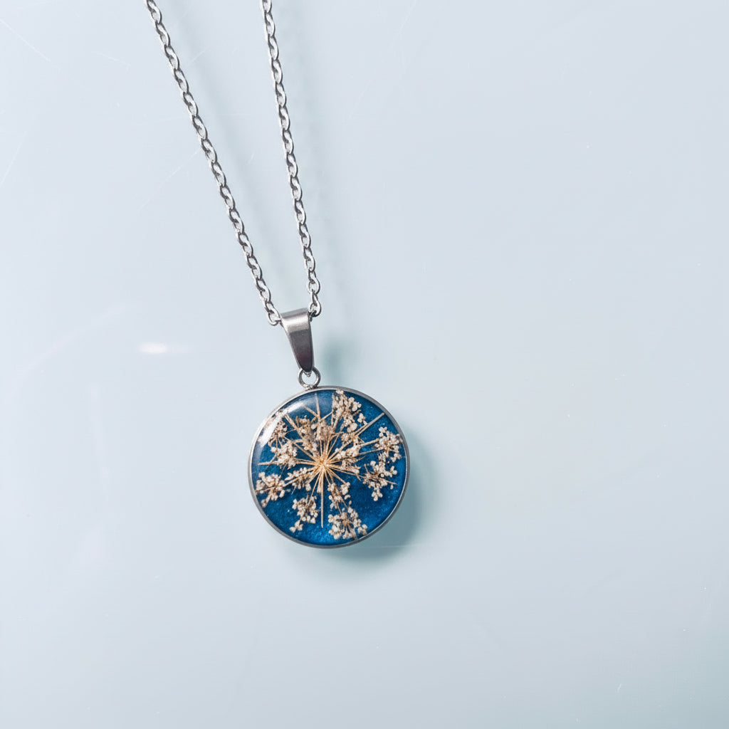Colgante azul con encaje de la reina Ana